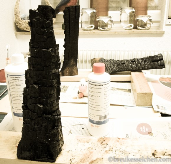 verkohlte Holzscheiten in schwarz